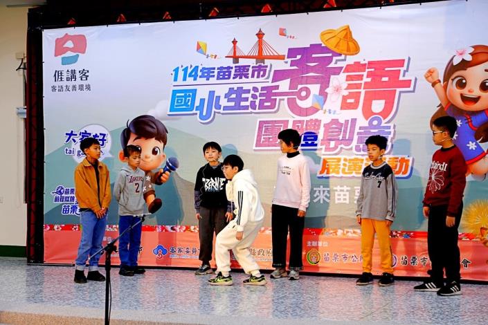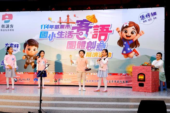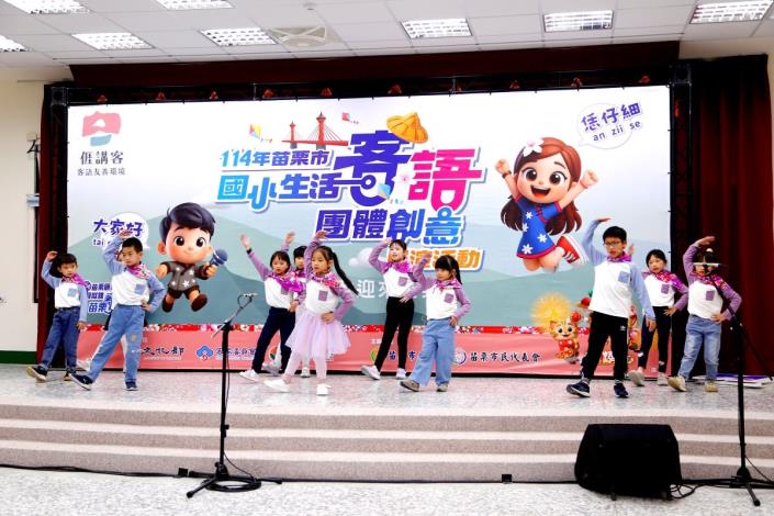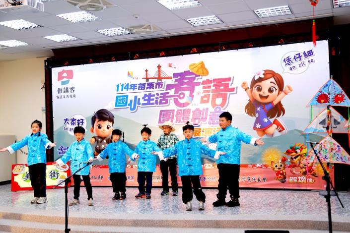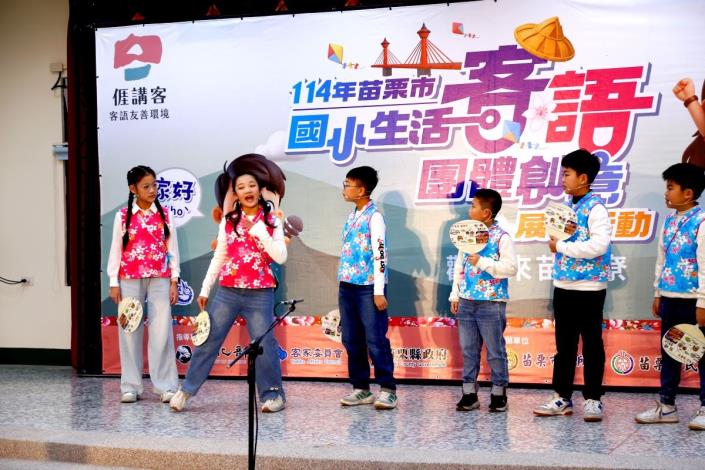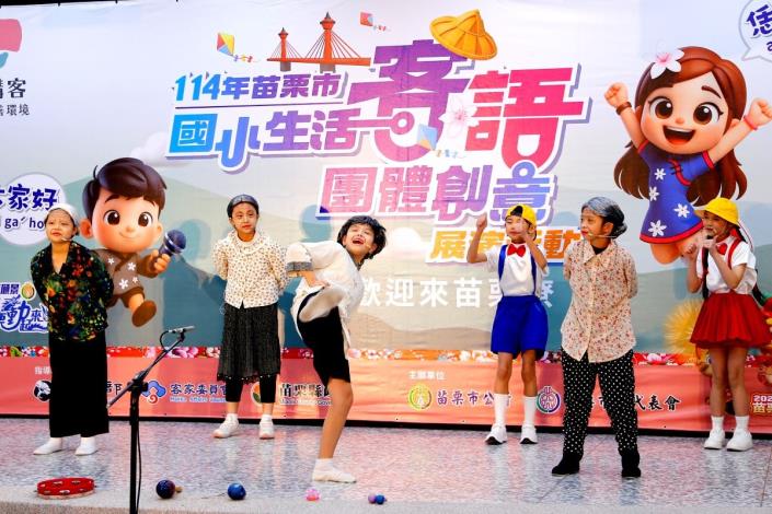 為深化客家語言向下扎根,苗栗市公所積極推動「苗栗市客語整體發展計畫」,持續鼓勵各級學校將客語融入校園教學與日常生活。今年特別辦理「苗栗市國小生活客語團體創意展演活動」,邀集苗栗市內8所國小學生共同參與,透過多元且貼近生活的展演形式,展現學生學習客語的豐碩成果。