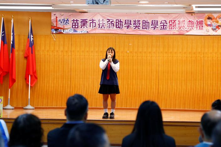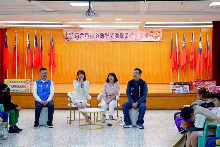 本次活動有10位獲獎小朋友分享這次的獲獎心得,孩子們對於能夠獲得獎助學金皆心存感恩,往後的日子一定會更加努力進取,市長也勉勵在座的同學,期許他們能把這份愛心化為力量,今日取之於社會、未來用之於社會。