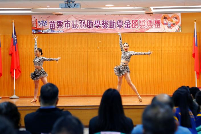 頒獎典禮的才藝表演由本次獲獎的同學擔綱演出,明仁國中李同學獨唱流行歌曲揭開表演序幕,接著是由曾獲「苗商好聲音」歌唱比賽第三名的黃同學獨唱,兩位同學的好嗓音讓台下觀眾掌聲不斷,謝同學和陳同學國標舞演出,熱情的音樂搭配純熟的舞姿,讓整場活動昇華為一場音樂和舞蹈的饗宴,最後由謝同學和陳同學兩人表演精彩絕倫的雙人國標舞,兩人共舞的絕佳默契和優美舞姿,讓整場表演充滿了美感及震撼。